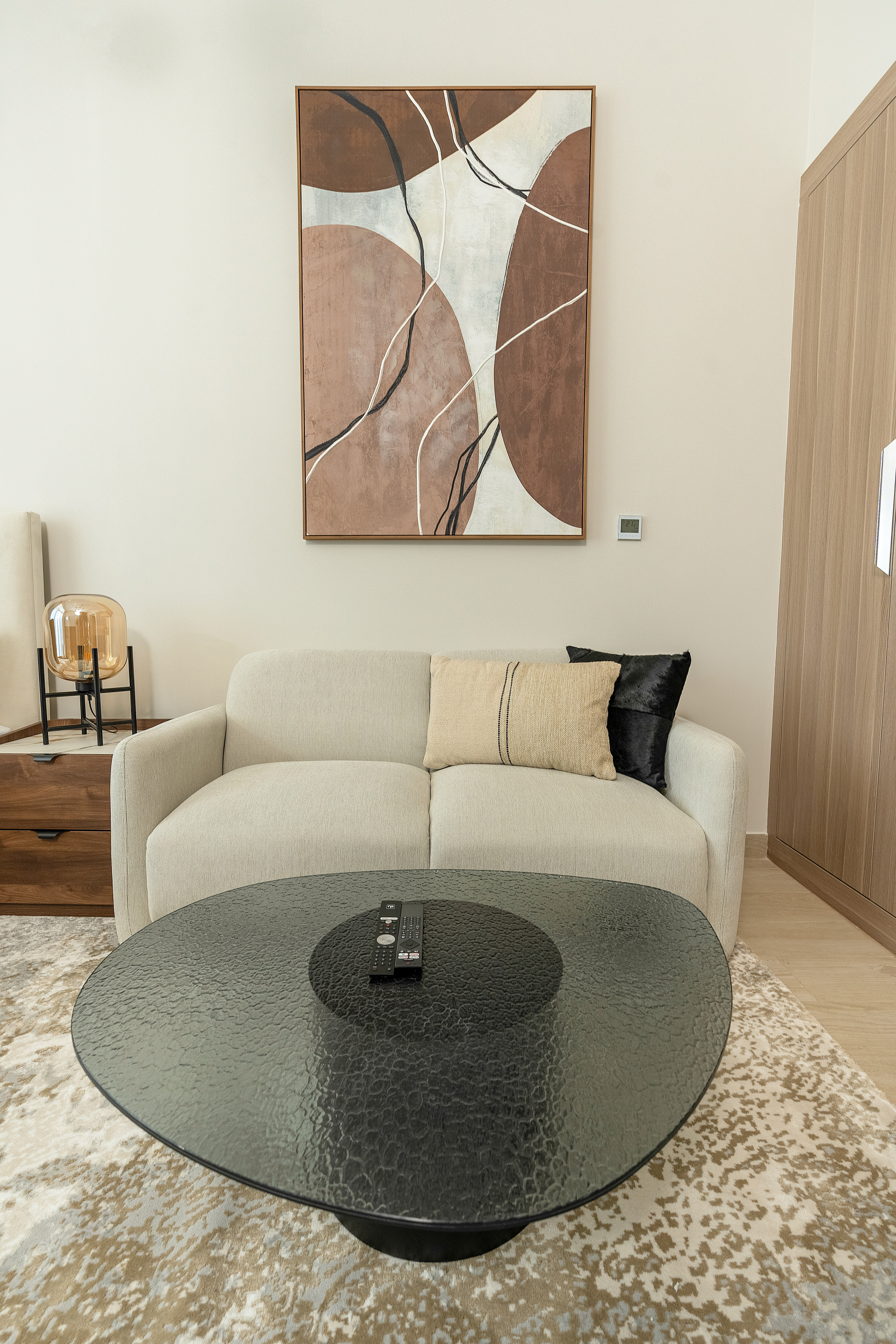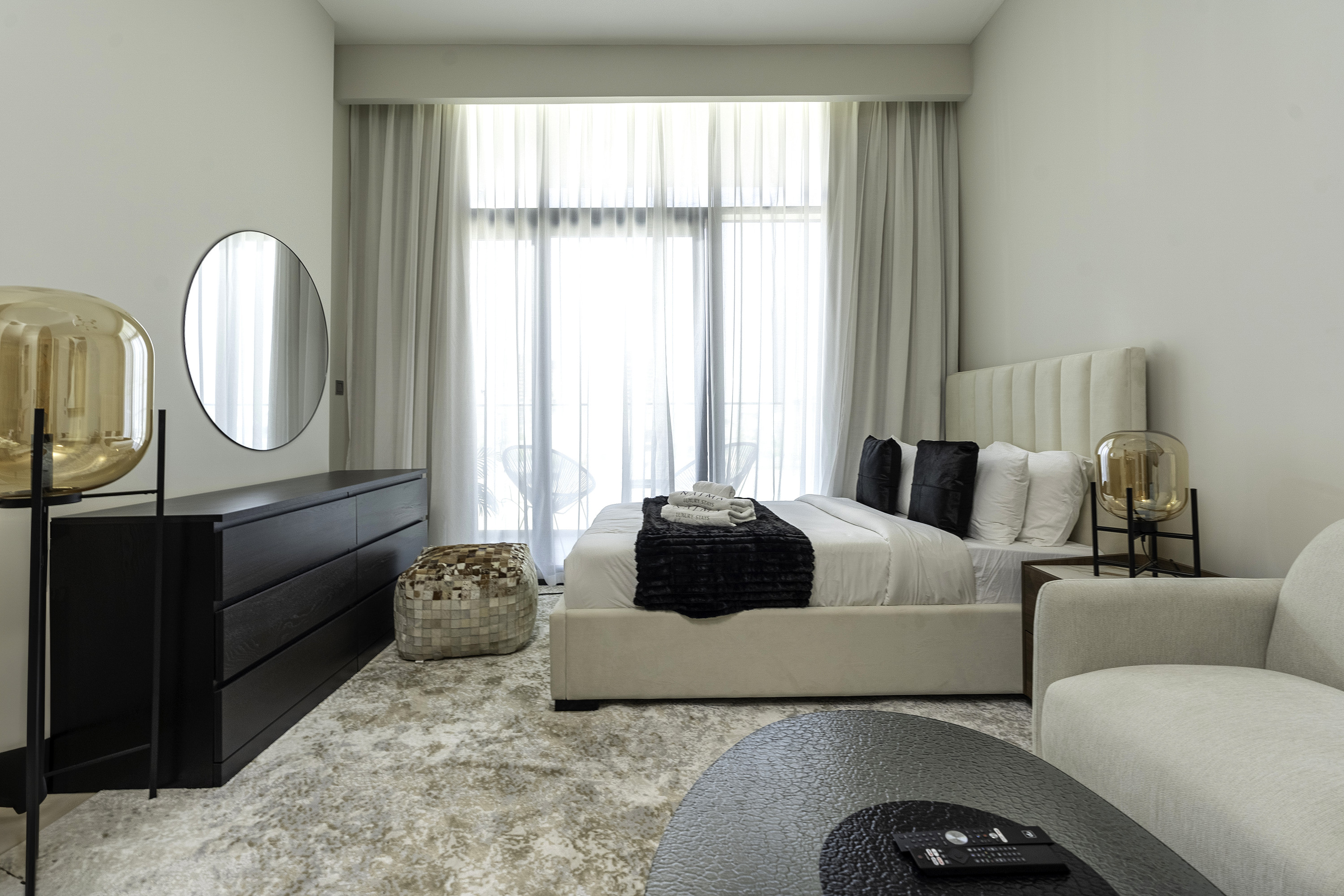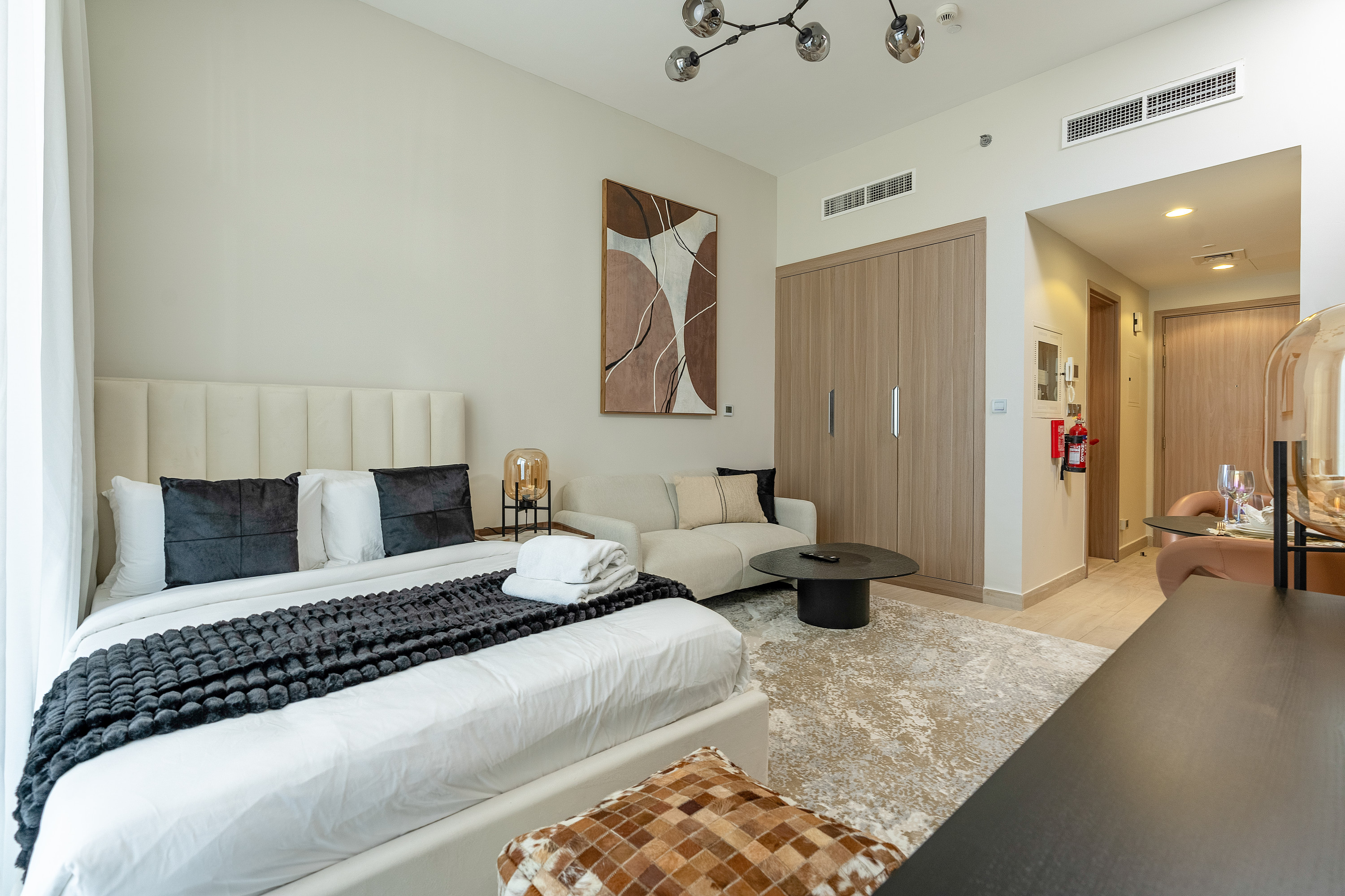 Baby cot available for hire 200 AED per duration of stay.