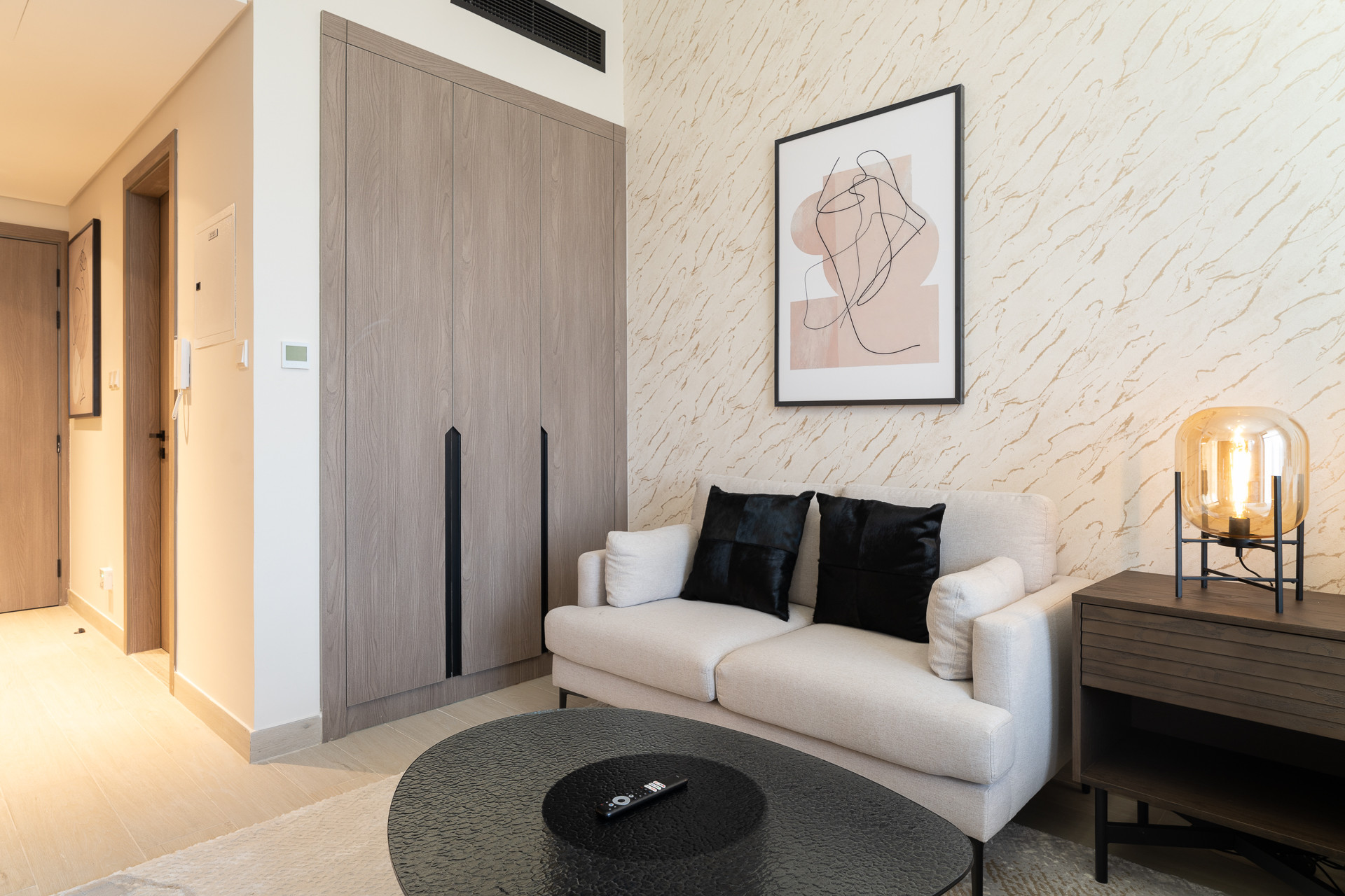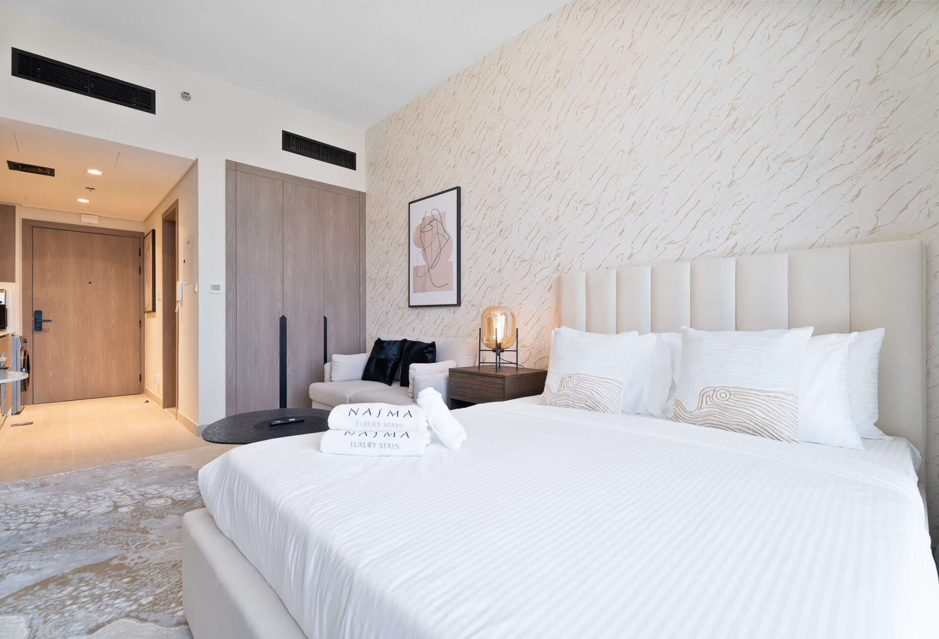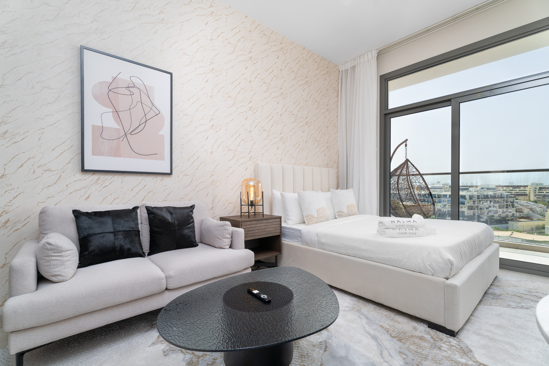 Baby cot available for hire 200 AED per duration of stay.